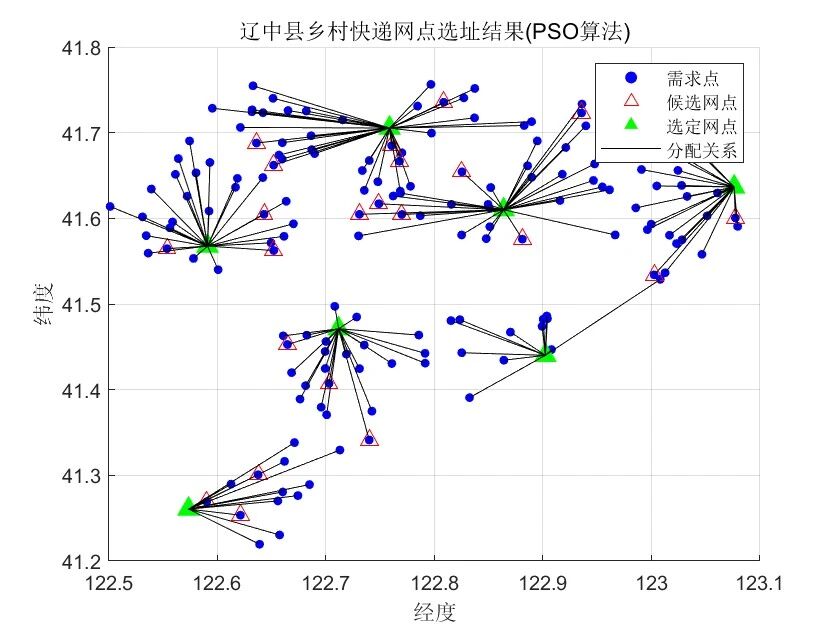 在快递物流行业中,网点选址是影响运营成本、配送效率与客户满意度的关键决策。传统选址方法(如重心法、穷举法)难以应对多约束、高维度的复杂场景(如覆盖范围、交通成本、区域订单密度差异)。而粒子群算法(Particle Swarm Optimization, PSO) 凭借全局寻优能力强、收敛速度快、易实现的特性,成为解决快递网点选址优化问题的高效工具。本文将从问题建模、算法适配、实现流程到案例验证,全面解析粒子群算法在该场景下的应用逻辑。