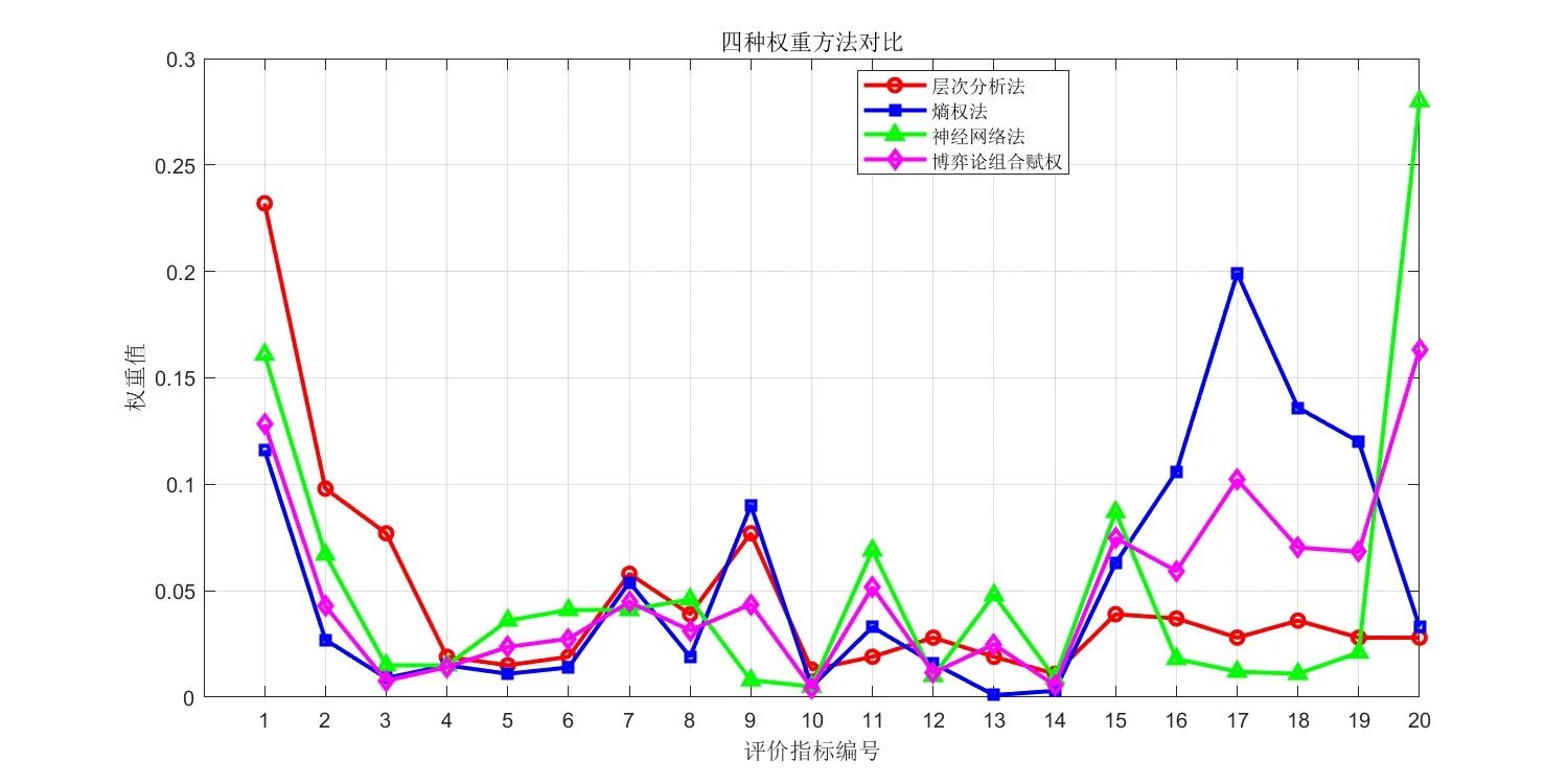 2. 熵权法和神经网络法在组合中占主导地位,说明客观赋权方法在本研究中更为重要