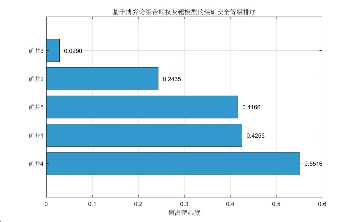 博弈论组合赋权通过 “主观权重与客观权重的博弈均衡”,实现权重的科学整合;灰靶模型擅长处理不确定信息,通过 “靶心 - 靶距” 量化评价对象与最优标准的差距。本文将两者结合,构建 “博弈论组合赋权灰靶模型”,系统解决煤矿安全评价中 “权重客观化” 与 “信息不确定性” 问题,为煤矿安全风险预警与管控提供量化支撑。