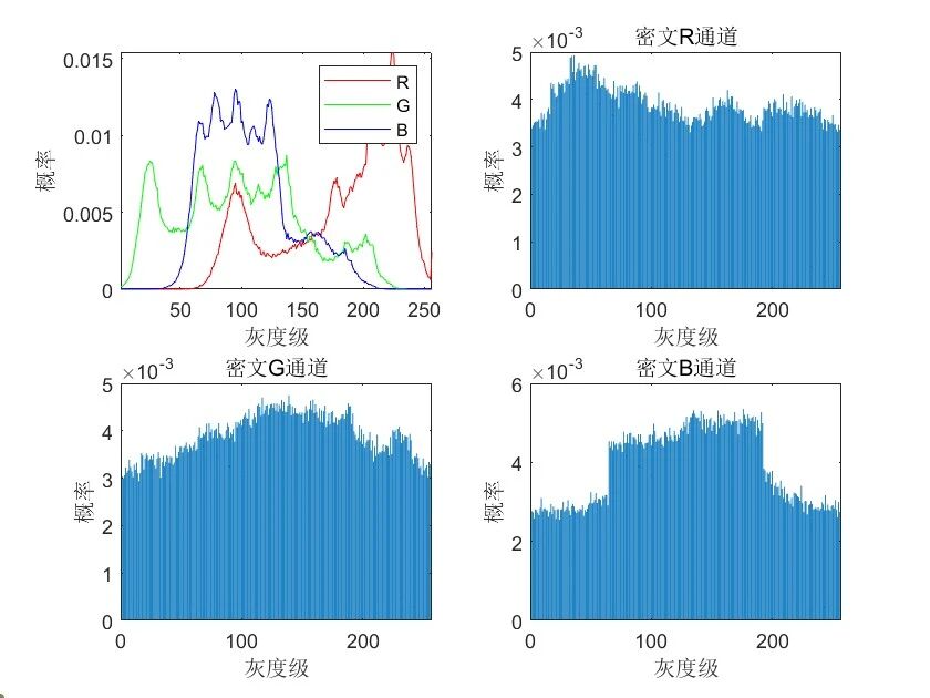 密文图像R、G、B信息熵: 7.9941 7.9903 7.9557