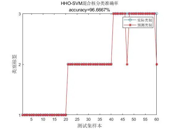 基于哈里斯鹰算法(HHO)优化混合核支持向量机(SVM)的分类预测模型(HHO-MK-SVM),是通过 HHO 的高效寻优能力解决混合核 SVM 参数优化难题,同时利用混合核函数对线性与非线性特征的协同捕捉能力,在复杂分类场景中实现高精度预测。该模型尤其适合处理 “线性趋势与非线性波动共存” 的数据集(如故障诊断、风险分级、图像识别),核心优势体现在参数优化效率与分类泛化性的双重提升。