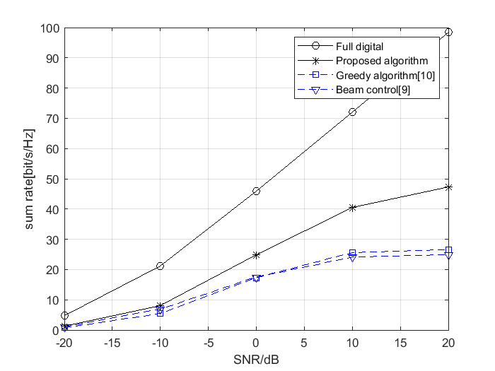 在毫米波大规模多输入多输出(MIMO)多用户系统中,用户间干扰成为限制系统容量的主要因素。提升系统容量的前提是在保证较大接收功率的基础上,最大限度地降低用户间干扰。针对这一情况,本文提出一种低复杂度分组优化的混合波束赋形(HBF)算法。具体而言,根据用户信道相关性及相关性阈值对用户进行分组,将相关性较强的用户划分为一组;随后以容量最大化为目标,在每组内采用低维穷举算法选择基站波束赋形向量,并引入贪心算法,即考虑前序各组波束赋形向量产生的影响。仿真结果表明,该分组优化混合波束赋形算法的系统和速率高于现有混合波束赋形算法。