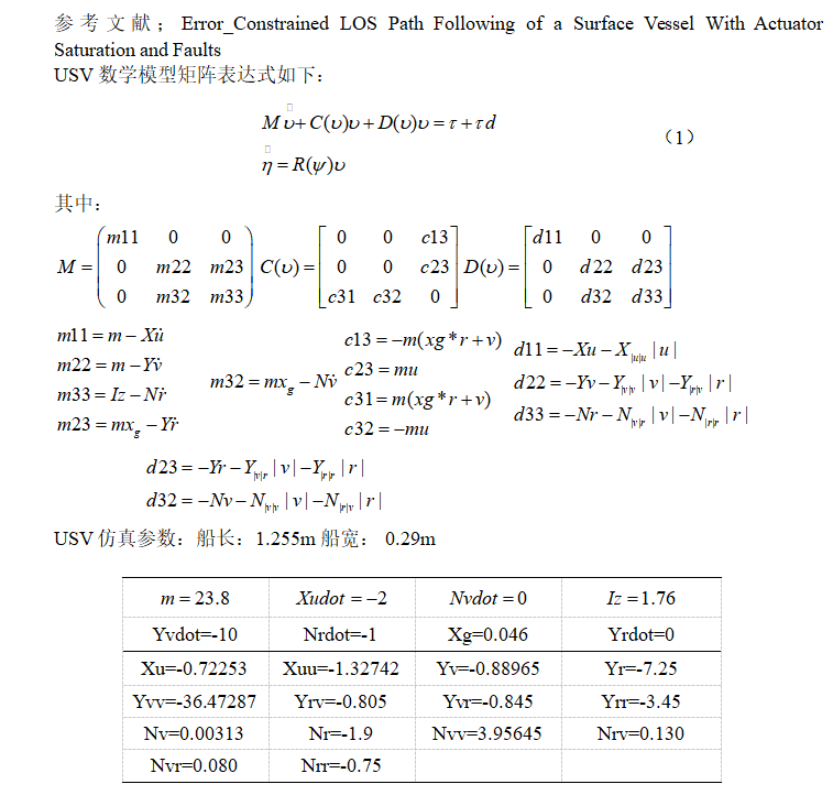 输入:LOS 输出的期望航向角、USV 当前的实际航向角、当前实际速度。