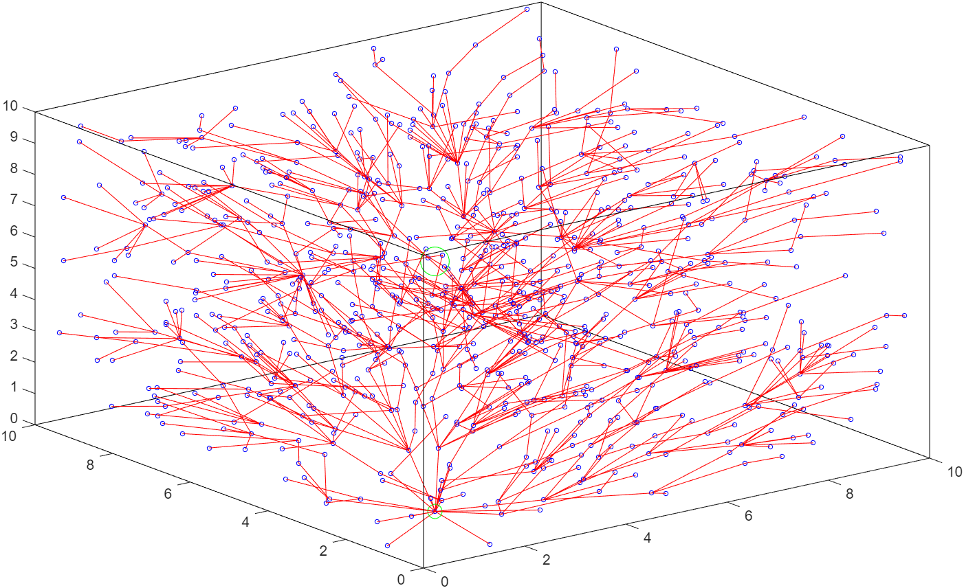 RRT 算法通过随机采样空间节点、逐步扩展搜索树来寻找路径,天然适合高维或复杂约束的环境。针对全向水下机器人,需进行两点关键改造:
