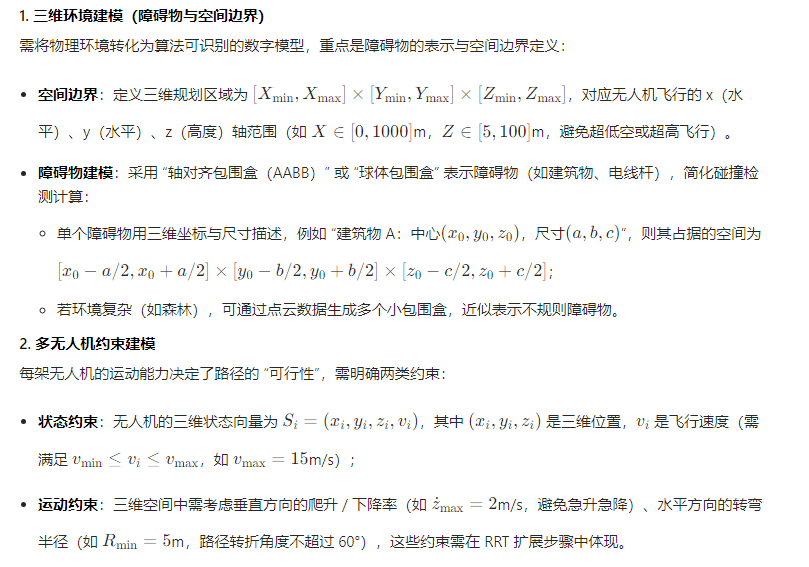 路径规划的前提是明确 “规划空间范围、障碍物形态、无人机约束”,需先完成三维场景与多无人机的数学建模。