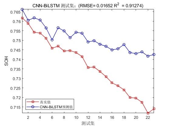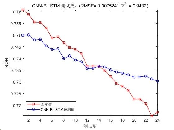 融合逻辑:CNN 输出的局部特征向量作为 BiLSTM 的输入,最终通过全连接层输出 SOH 预测值,实现 “局部细节 + 全局趋势” 的双重建模。