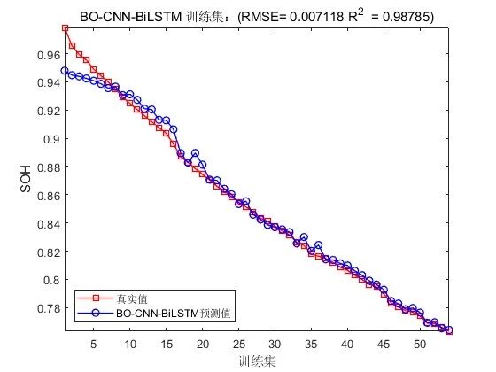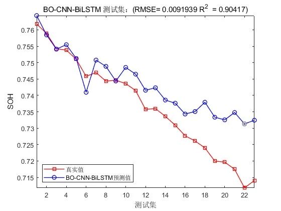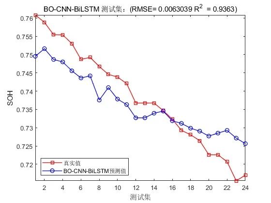 贝叶斯优化(Bayesian Optimization)结合 CNN-BiLSTM 的锂电池 SOH(State of Health,健康状态)预测模型,是针对锂电池老化过程 “非线性、强时序依赖、影响因素复杂” 的高精度预测方案。核心逻辑是:利用 CNN 提取锂电池充放电数据的局部特征(如电压波动、电流突变),BiLSTM 捕捉老化过程的长期时序依赖(如循环次数与容量衰减的关联),再通过贝叶斯优化高效搜索模型超参数,解决传统 CNN-BiLSTM 超参数依赖经验调试、预测精度不足的问题,最终实现 SOH 的精准预测。