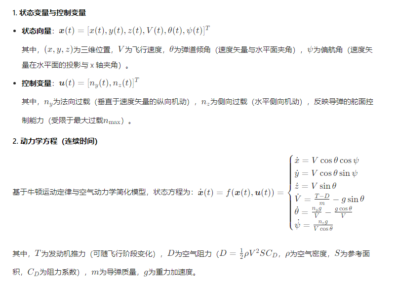 一、导弹动力学模型与状态描述