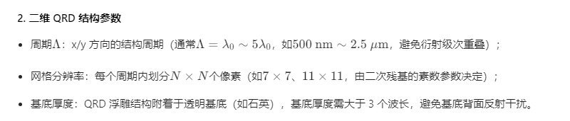 基于有限差分时域(FDTD)方法的二维二次残基扩散器(QRD)模型,核心是通过 FDTD 求解二维 Maxwell 方程,模拟电磁波在周期性二次残基相位结构中的散射与扩散,实现入射光束的匀化与定向扩散,兼具结构简单、能量利用率高的优势,适用于光学照明、激光光束整形、成像系统匀化等场景。