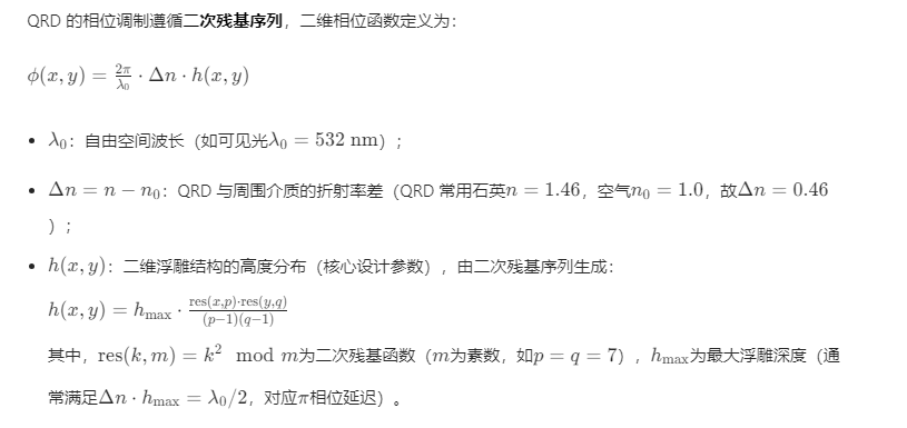 二次残基扩散器是一种基于 “二次残基序列” 设计的相位型光学元件,通过浮雕式结构引入周期性相位调制,使入射电磁波发生多角度散射,最终输出均匀的扩散光束。