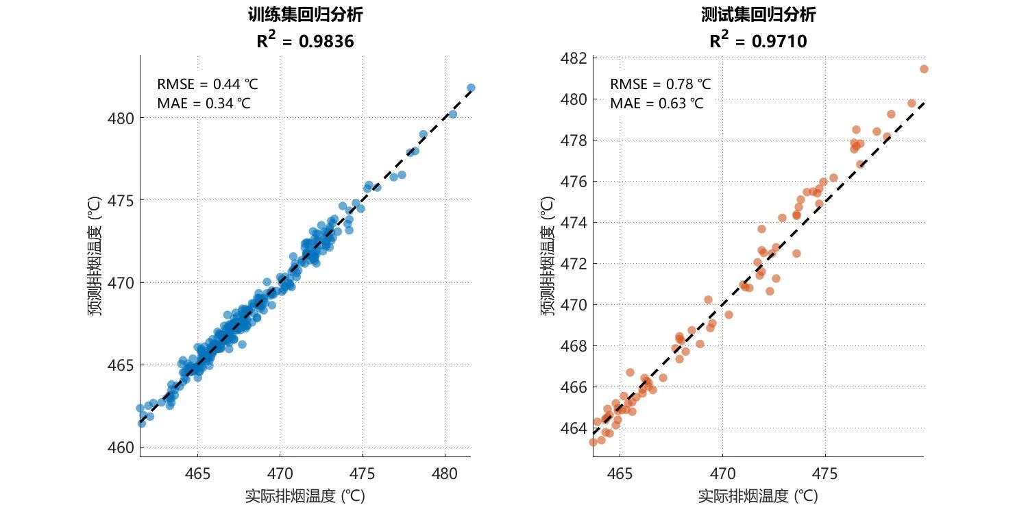 训练集 - 均方根误差: 0.436 ℃, 平均绝对误差: 0.339 ℃, 决定系数: 0.9836