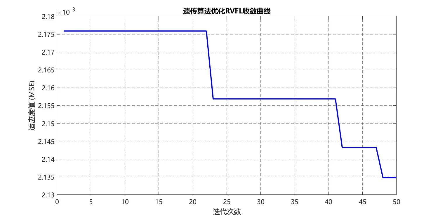 遗传算法模拟生物 “选择 - 交叉 - 变异” 的进化过程,通过种群迭代搜索全局最优解。为适配 RVFL 的参数优化需求,需对 GA 进行针对性改造,核心是将 RVFL 的待优化参数编码为染色体,并设计适配回归任务的适应度函数。