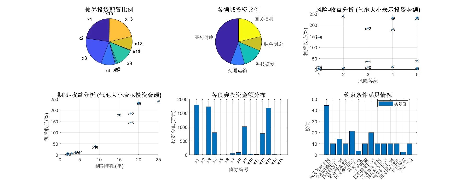 :投资总额、单只债券权重限制、久期 / 凸性约束、信用评级约束、交易成本、最低投资门槛。