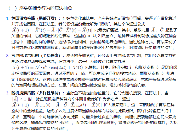 直到 2016 年,一种全新的启发式算法 —— 鲸鱼优化算法(Whale Optimization Algorithm,WOA)被提出。WOA 的灵感来源于座头鲸独特的气泡网捕食行为。座头鲸在捕食时,会围绕鱼群游动并吐出气泡,形成一个气泡网,将鱼群包围在其中,然后逐渐收紧包围圈,最终捕获猎物。WOA 巧妙地模拟了这一过程,通过独特的数学模型和搜索策略,为 TSP 问题的求解提供了新的思路和方法。它不仅具有较强的全局搜索能力,能够在广阔的解空间中寻找潜在的最优解,还具备一定的局部搜索能力,能够对找到的解进行精细优化,从而在解的质量和收敛效率上都展现出了独特的优势。