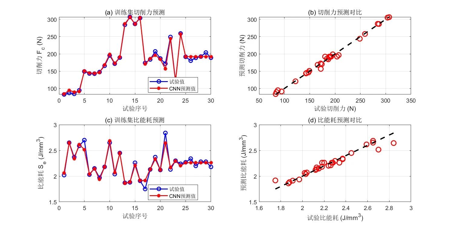 这是一个典型的 **“数据驱动 + 智能优化”的工业应用场景。其核心思想是,利用卷积神经网络(CNN)强大的非线性拟合能力,构建一个能够精确预测切削过程中多个目标(如表面粗糙度、切削力、材料去除率等)的代理模型(Surrogate Model)。然后,将这个代理模型嵌入到差分进化非支配排序遗传算法 III(DE-NSGAIII)** 的优化框架中,高效地搜索出 Pareto 最优的切削参数组合。