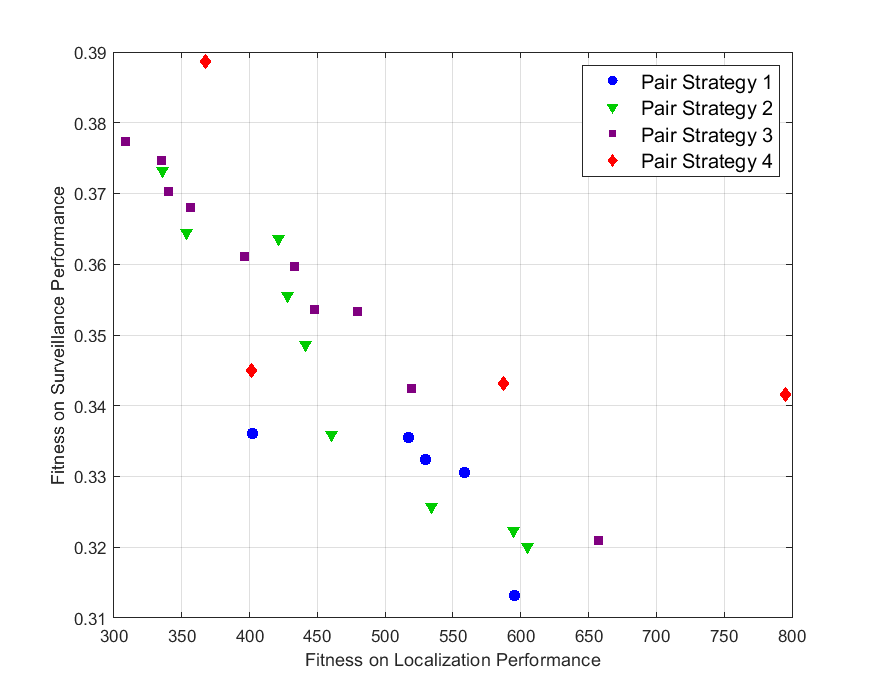 * **多目标优化**:同时考虑定位与监视性能,以最小化 “定位性能目标函数$\Lambda$” 与 “1 - 有效监视区域覆盖率$\Gamma$” 为目标,约束条件与单目标优化一致。两类优化问题均因复杂耦合约束与非凸特性,需借助启发式算法求解。