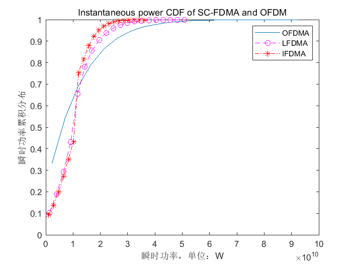 IFDMA_oversampled = zeros(1, N_overlapping*number_of_subcarriers);(LFDMA 和 OFDMA 同理)。 - 提升 CDF 绘制精度