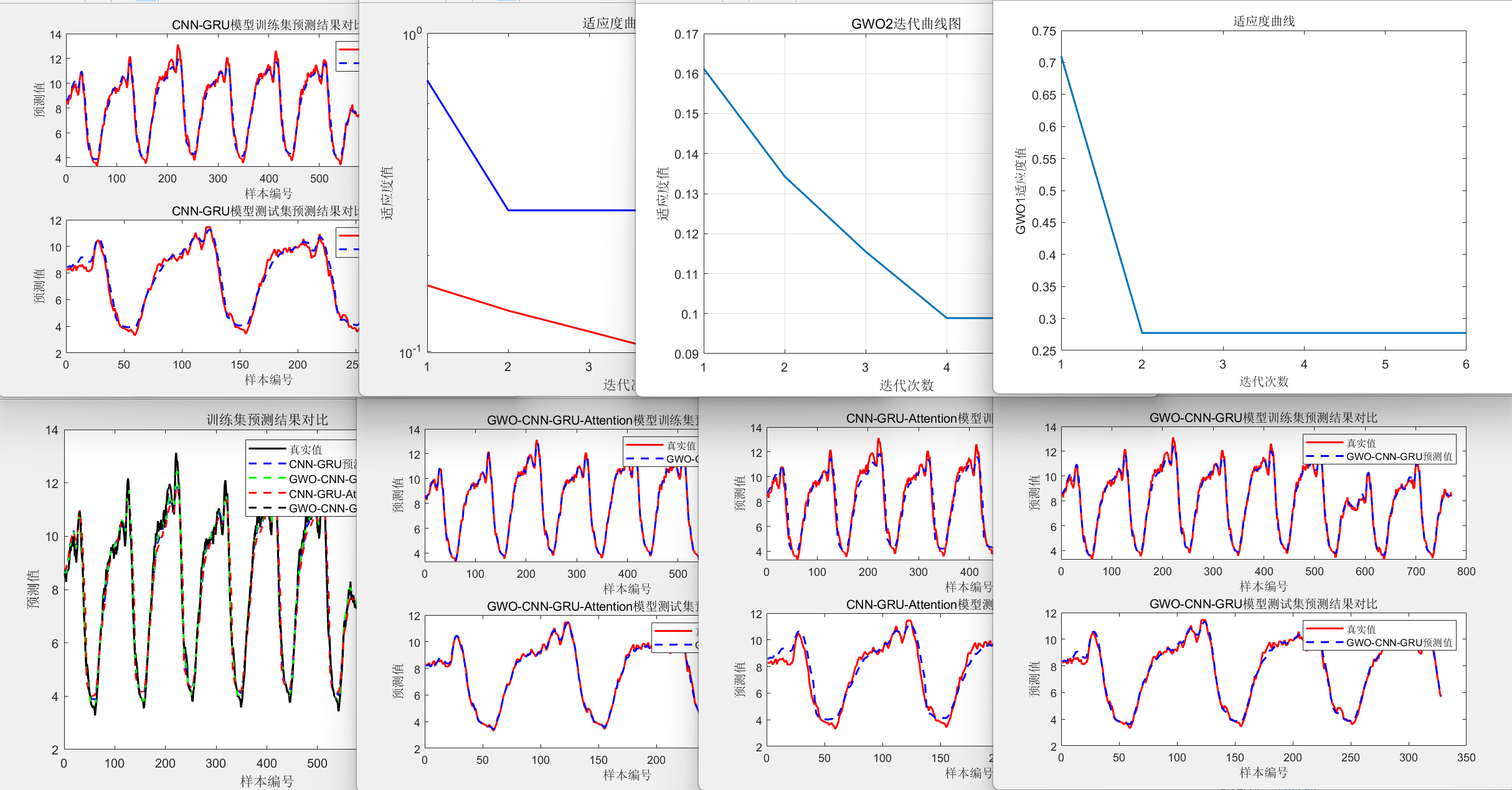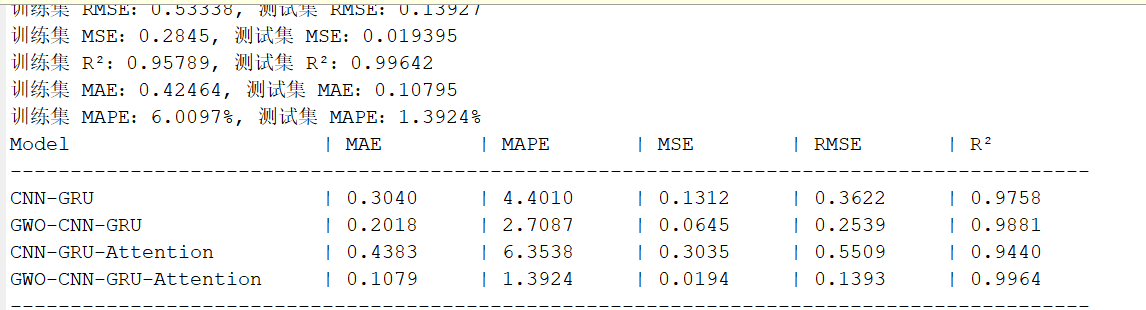 灰狼算法(Grey Wolf Optimizer, GWO)作为群体智能优化算法,通过模拟灰狼种群 “包围 - 追捕 - 攻击” 的狩猎行为,可高效搜索全局最优超参数组合,解决手动调参的低效问题。本文以航空发动机多传感器时序数据(NASA CMAPSS 数据集)为对象,构建四组对比模型(基础 CNN-GRU-Attention、GWO 优化版、无 CNN 版、无 Attention 版),通过 “优化效果对比 + 组件作用验证”,完整拆解 GWO-CNN-GRU-Attention 系列模型的多变量时序预测逻辑,为工业场景提供 “优化方法 + 模型选型” 的双重参考。