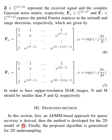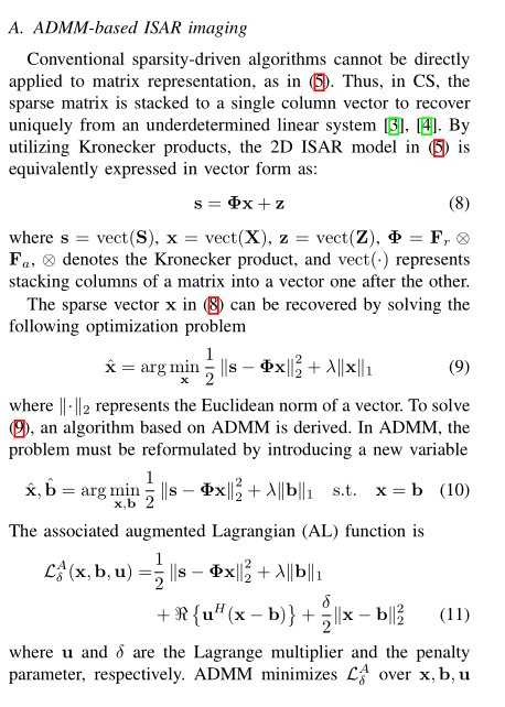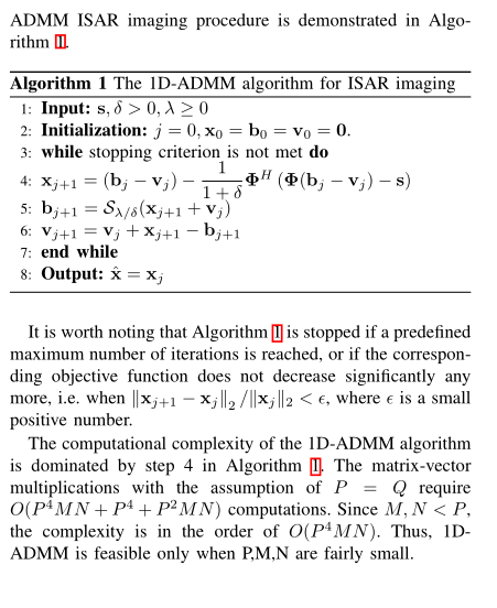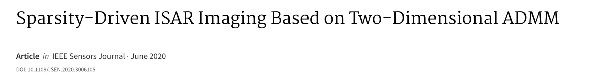 因此,本文提出了一种新颖的二维(2D)ADMM 方法。该方法可以直接应用于矩阵形式的 ISAR 模型,与一维算法相比,所需内存和计算量更低。此外,在不同信噪比(Signal-to-Noise Ratio, SNR)条件和采样率下,所提的二维 ADMM 方法的性能优于二维平滑 L0(2D-SL0)算法和二维梯度投影序贯一阶负指数(2D-GP-SOONE)算法。基于雅克 - 42(Yak-42)飞机真实数据的联合仿真和实测数据结果验证了该方法的优越性。
