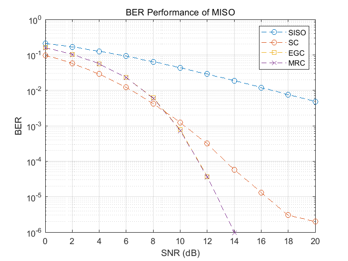 :BPSK/QPSK 在低信噪比下 BER 性能优异,适合衰落信道
