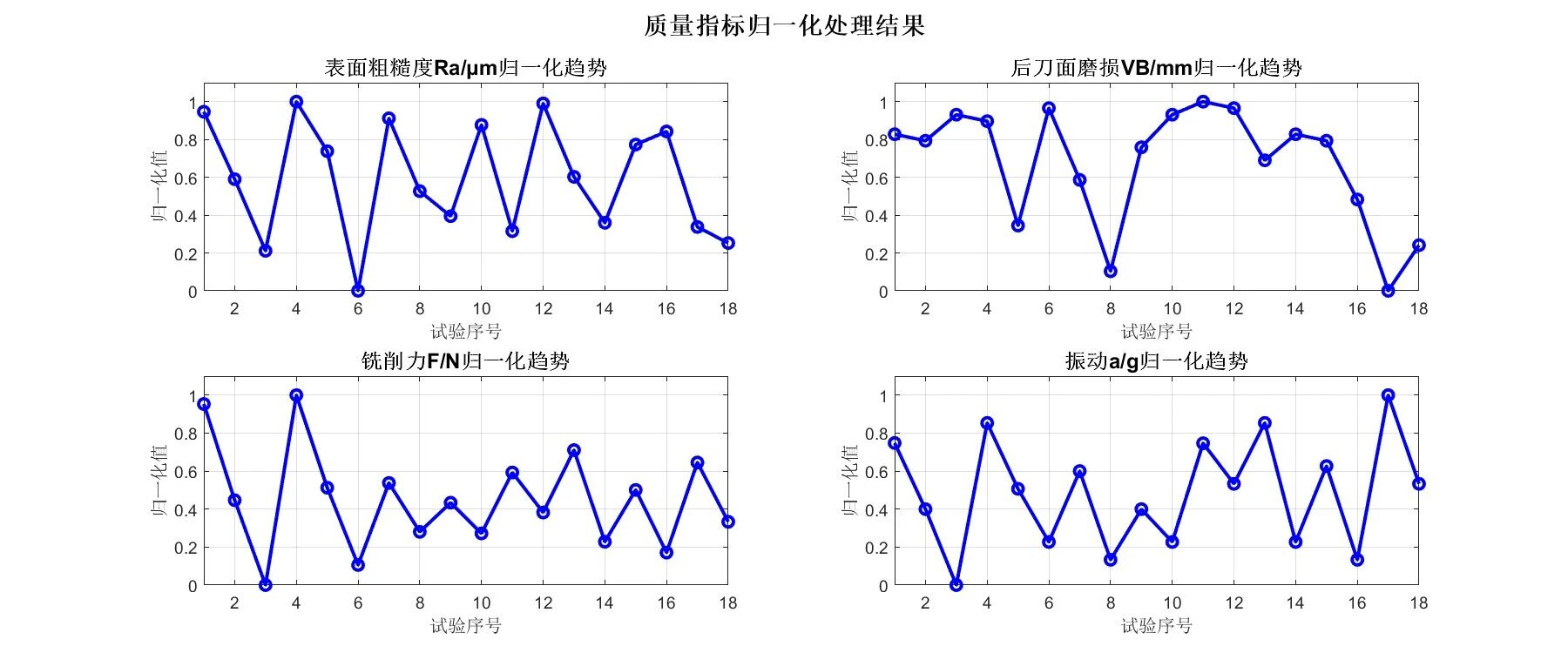 应用价值:将 "切削效率↑、刀具寿命↑、表面粗糙度↓、切削力↓" 等矛盾目标转化为单一 GRG 值,GRG 越大表示综合性能越优,实现多目标问题的统一求解。