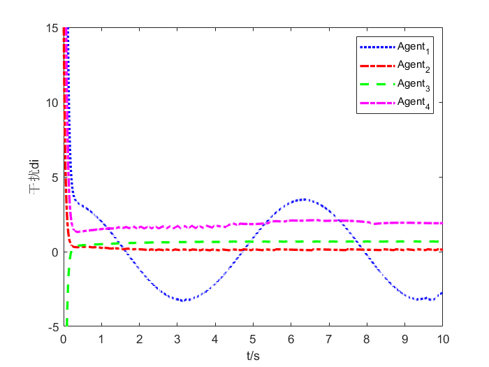 A_ext包含领导者(0 号)和跟随者(1-4 号),A_ext(i,j)=1表示节点i能接收节点j的信息。 -