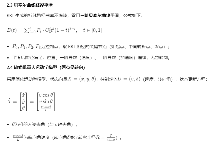 :贝塞尔曲线优化 RRT 路径,保证曲率连续,适配泊车场景的低速平稳需求;