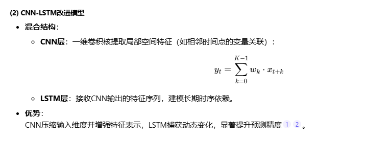 CNN-LSTM改进:在LSTM前加入CNN层,用于特征提取。