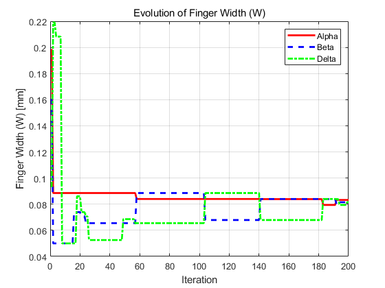 这段代码是 基于灰狼优化算法(GWO)的叉指电容器(IDC)参数优化程序,核心目标是通过 GWO 算法求解 IDC 的关键设计参数(指宽、指间距、指长),使 IDC 的串联电容值精确逼近目标值(1.30 pF)。代码融合了电磁学电容计算模型与智能优化算法,是典型的 “工程性能优化” 应用场景。