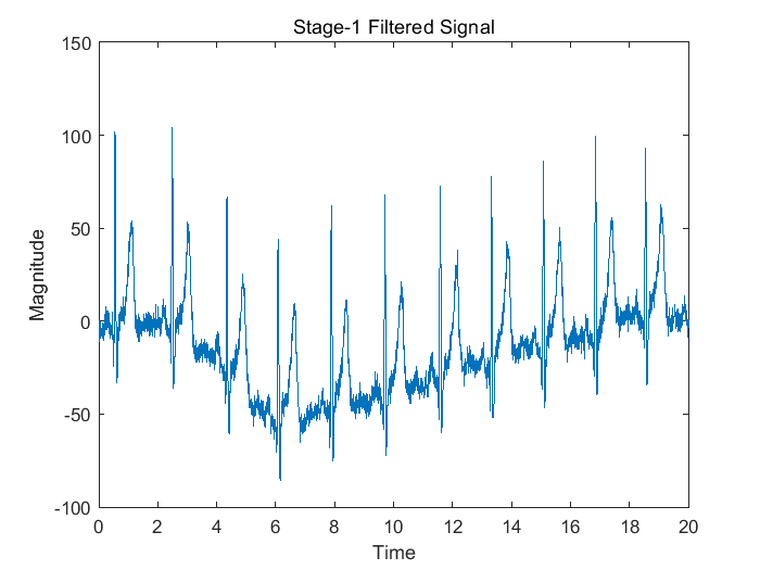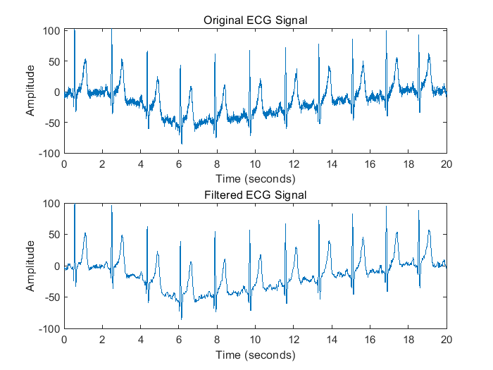 核心去噪思路:针对性设计滤波器 —— 用高通滤除基线漂移、陷波滤除工频干扰、低通滤除肌电噪声,最终保留 ECG 有效波形(P 波、QRS 波、T 波)。