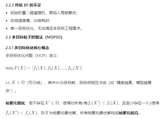 结合 MOPSO 处理多目标优化需求(如 “BP 预测精度最高 + 训练时间最短 + 模型复杂度最低”),输出兼顾多个目标的帕累托最优解;