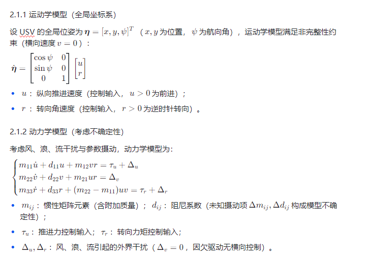 欠驱动自主水面船舶(USV)因 “控制输入少于自由度”(仅推进力、转向力矩