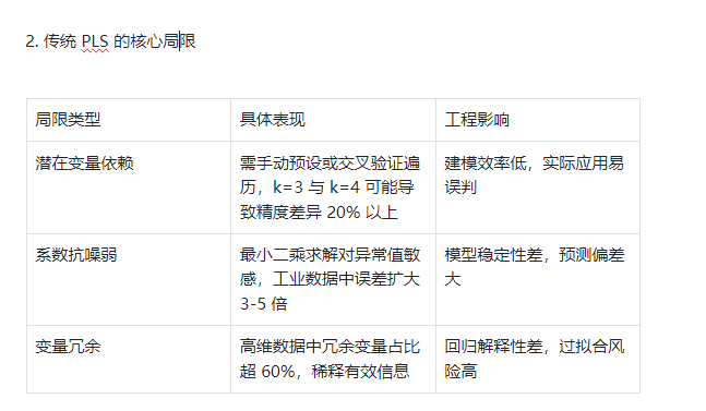 - 潜在变量个数难确定:PLS 通过提取潜在变量(Latent Variables)实现降维,变量个数过多易过拟合,过少则丢失关键信息,传统交叉验证法需遍历多个候选值,计算效率低且易陷入局部最优;