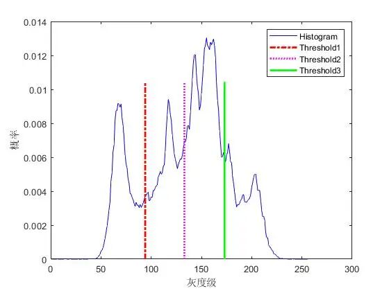 ImProvedGA-Otsu最佳阈值:94 133 173