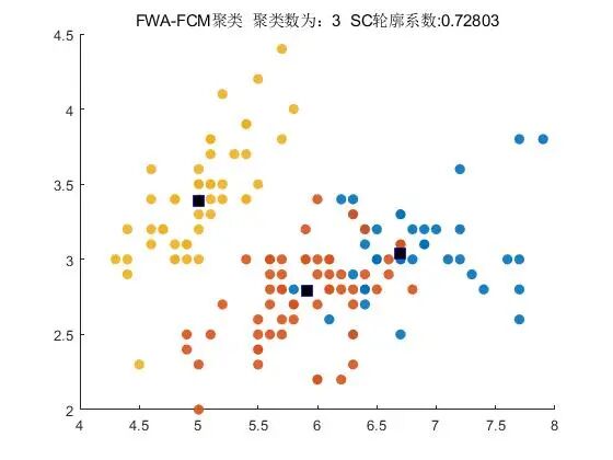 - FCM 精细聚类:将 FWA 寻得的最优参数作为 FCM 的初始值,执行 FCM 迭代,得到样本的隶属度矩阵与最终聚类结果;