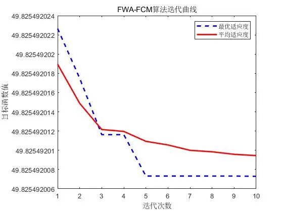 - 适应度值:以 FCM 的目标函数值作为烟花的适应度,值越小代表解的质量越高。