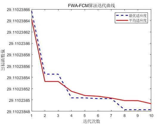 - FWA 全局寻优:以 FCM 的目标函数值为适应度,通过烟花爆炸与变异操作,在解空间中搜索全局最优的聚类中心与模糊指数;