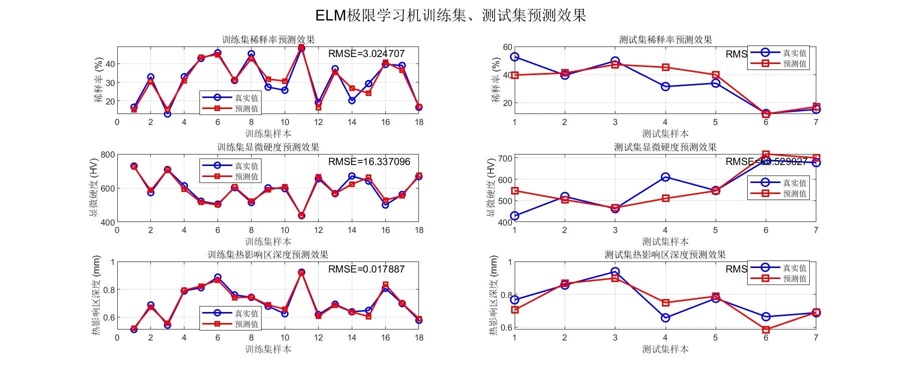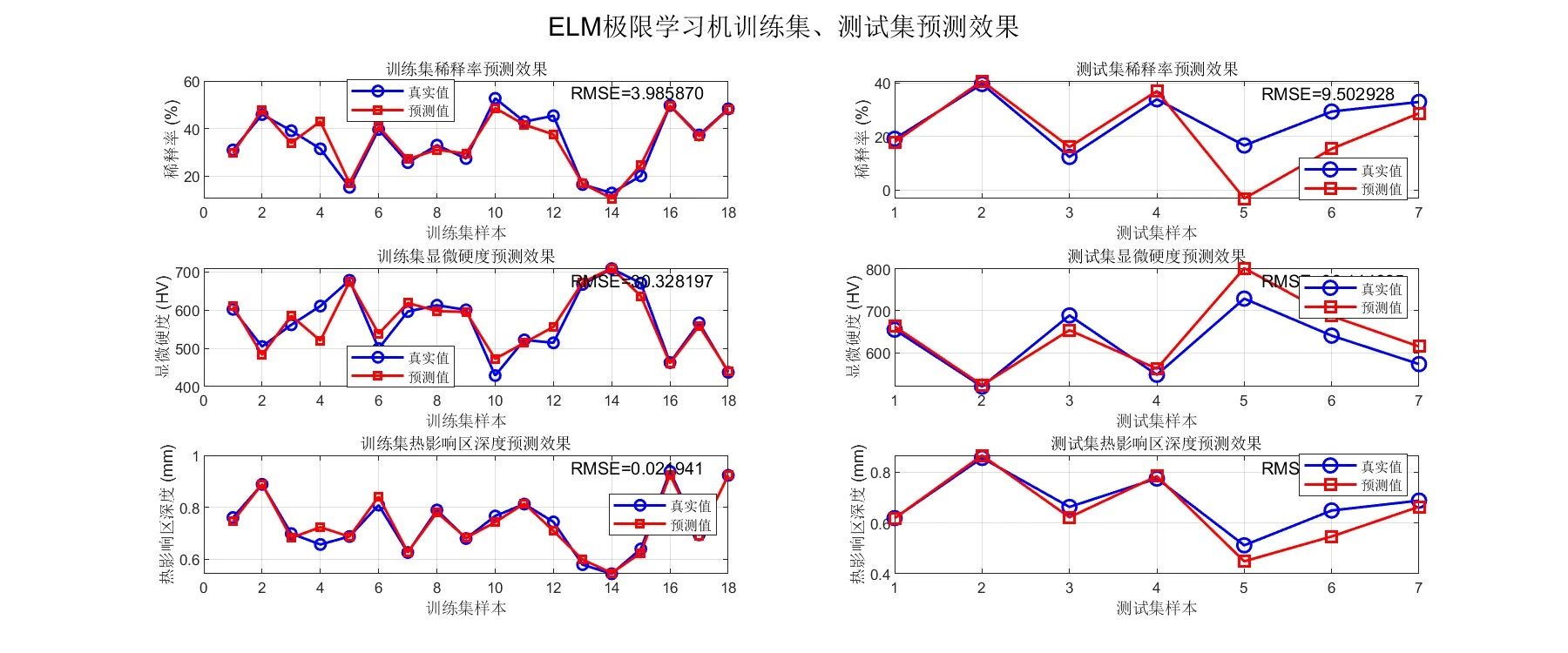 测试集RMSE: 稀释率=8.384264, 热影响区深度=0.045503, 显微硬度=56.367661