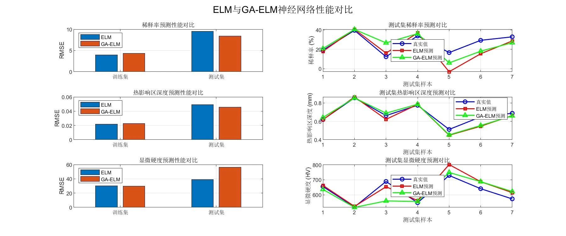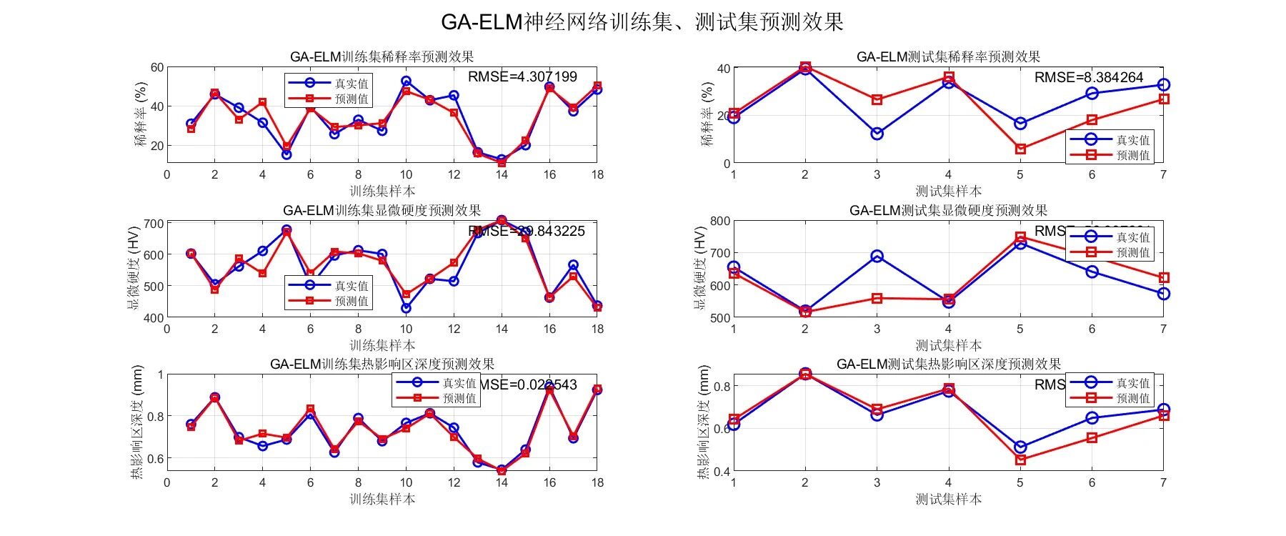 GA-ELM(遗传算法优化极限学习机)是一种融合了两种强大技术的智能算法,旨在构建高精度的预测模型,以解决复杂的非线性问题。在激光熔覆领域,它通过对工艺参数与熔覆层性能之间复杂关系的精确建模,为后续的多目标优化提供坚实的数据基础。