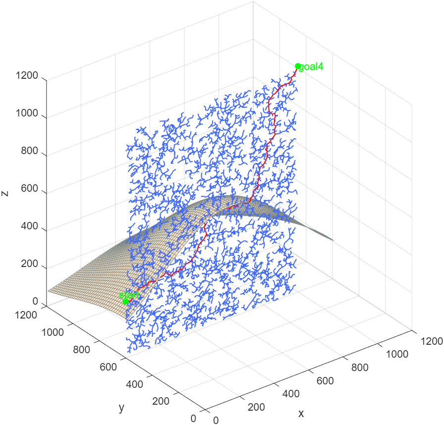 碰撞检测:验证X_nearest与X_new间的路径段是否与连续曲面障碍物碰撞,若无碰撞则将X_new加入搜索树;