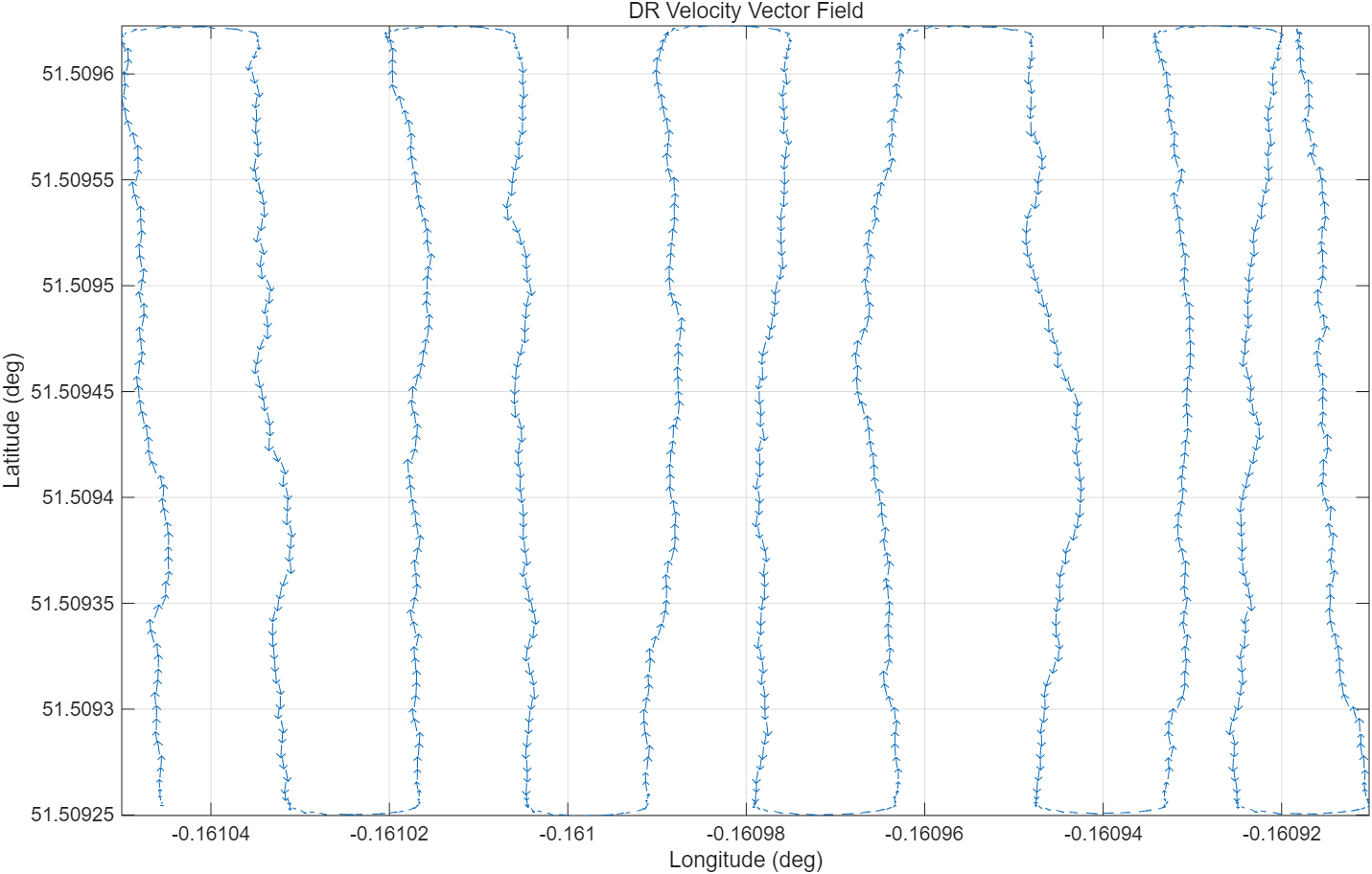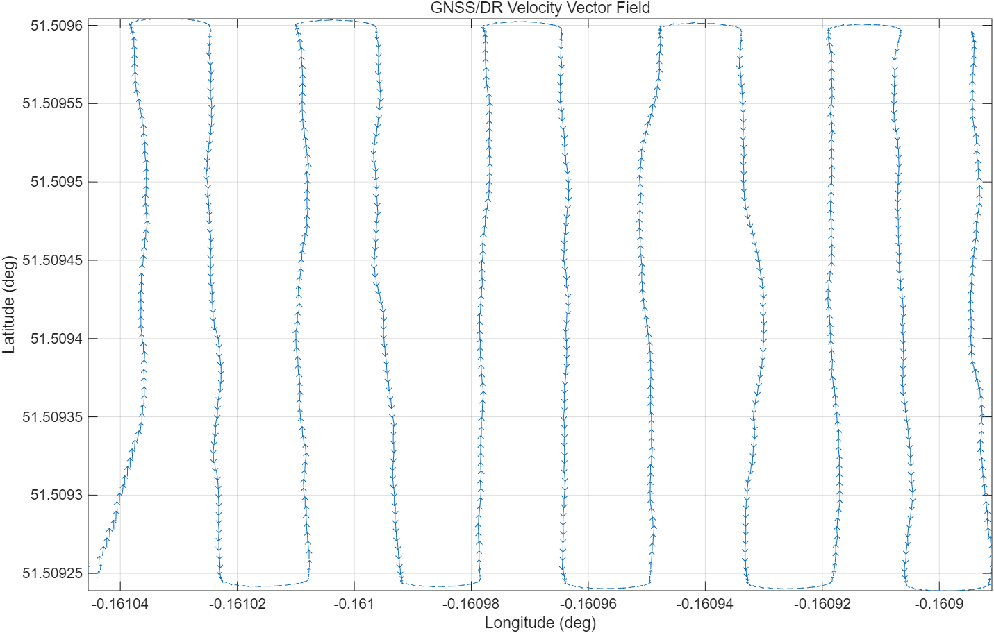 速度转换构建 ECEF 到 NED 的转换矩阵C_e_n(基于当前纬度和经度),通过矩阵乘法将 ECEF 下的速度v_eb_e转换为 NED 坐标系下的速度v_eb_n,满足工程中对东北天方向速度的直观需求。
