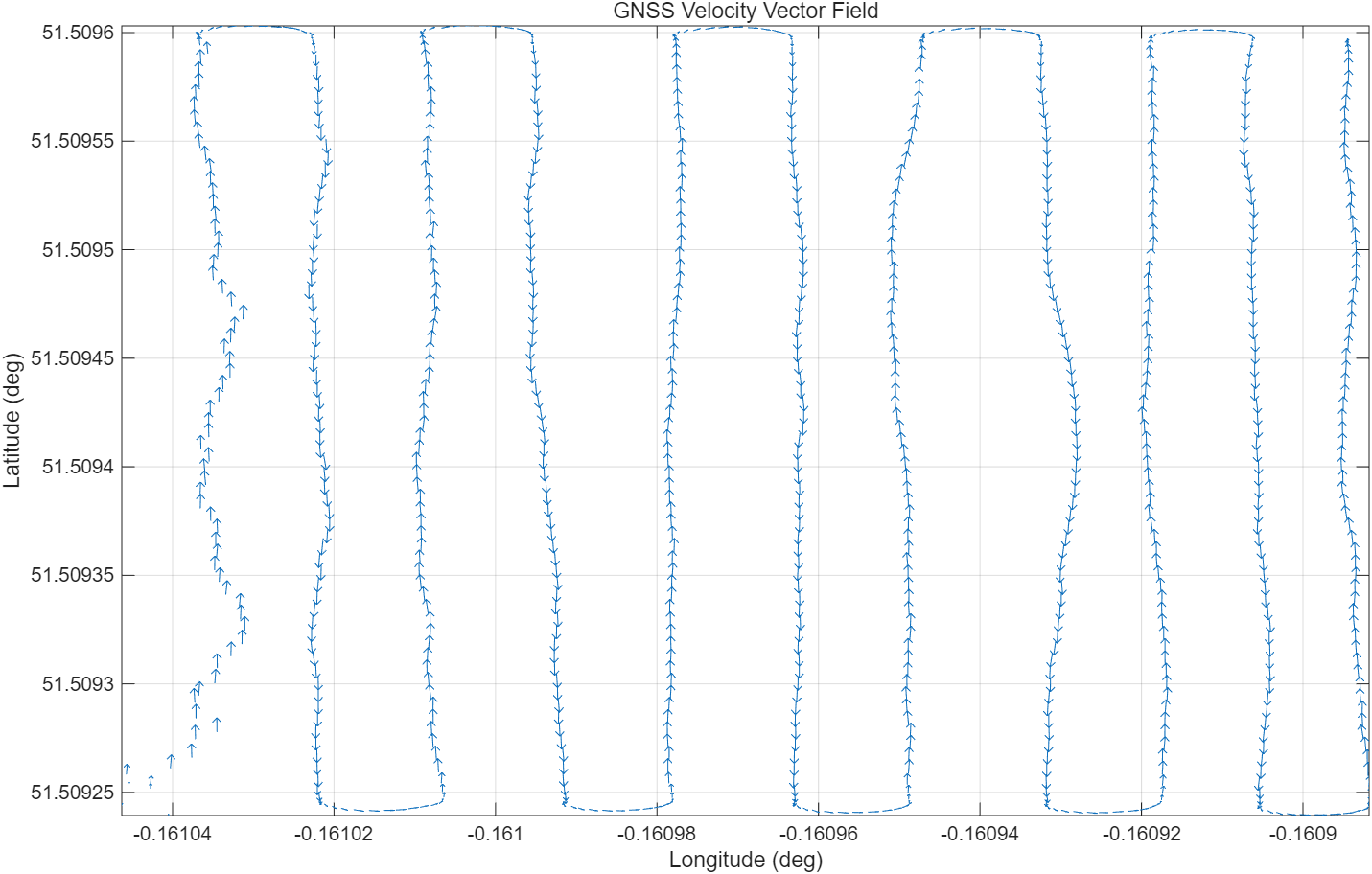 代码分为两部分:坐标系转换函数和定位解算主程序。整体流程是:读取伪距数据→计算卫星位置和速度→修正萨格纳克效应→通过最小二乘迭代求解接收机位置→将结果从 ECEF 坐标系转换为 NED(东北天)坐标系下的地理坐标(纬度、经度、高度),最终输出多历元的定位结果。