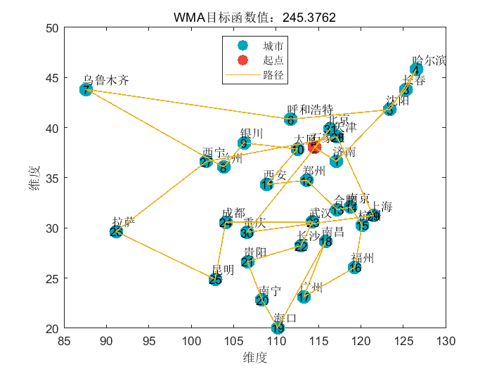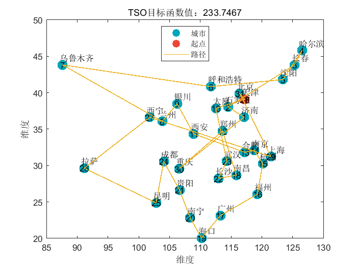 传统求解TSP的方法(如动态规划法、分支定界法)在城市数量较少时可获得精确解,但随着城市规模扩大(如超过20个城市),计算复杂度呈指数级增长,难以满足实际需求。智能优化算法凭借其全局搜索能力强、鲁棒性好、无需依赖问题数学特性的优势,成为求解大规模TSP问题的主流方案。本文聚焦两种新型智能优化算法——鲸鱼迁徙算法(Whale Migration Algorithm, WMA)和金枪鱼算法(Tuna Swarm Optimization, TSO),详细解析其适配TSP问题的改进策略、求解流程,并结合自定义城市经纬度的案例,验证两种算法的求解效果。