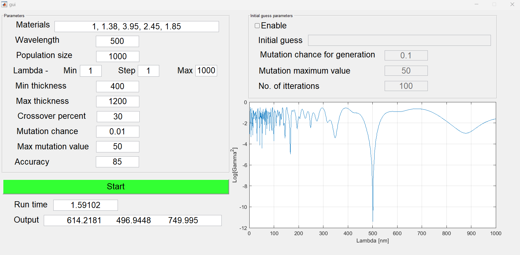 相较于传统优化方法,遗传算法在光学多层滤波器设计中的优势的体现在:① 全局寻优能力强,可有效避免陷入局部最优解;② 适用于多目标优化,能同时兼顾带宽、透过率、截止深度等多个性能指标;③ 对问题的非线性、约束条件适应性好,无需建立复杂的数学模型;④ 自动化程度高,减少人工经验依赖。