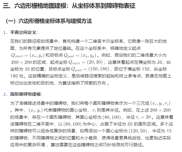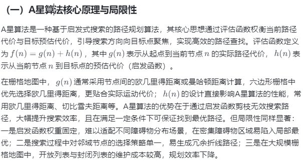 一、引言:六边形栅格地图路径规划的核心挑战与算法融合价值在机器人自主导航、无人机巡检、智能仓储分拣等领域,路径规划是决定设备运行效率与安全性的核心技术。栅格地图因建模直观、适配性强,成为路径规划的主流环境表征方式,而六边形栅格相比传统方形栅格,具有邻域对称性好、方向连续性优、路径平滑度高的天然优势,更贴合机器人实际运动轨迹需求。