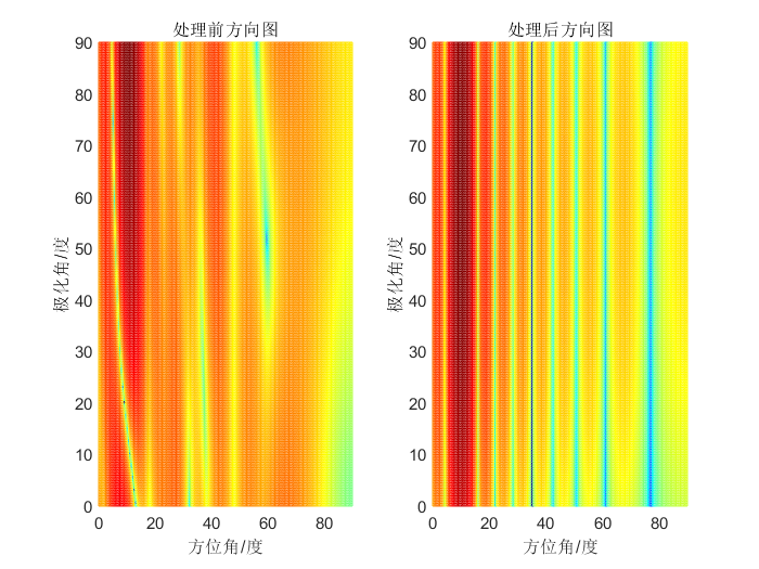 相较于单一空域或极化域模型,联合模型通过增加极化维度,显著提升了信号的可辨识性——即使目标与主瓣干扰的空域方向角接近(甚至重合),只要两者的极化特性存在差异,就能在联合空间中被有效区分,为后续抗干扰处理奠定基础。