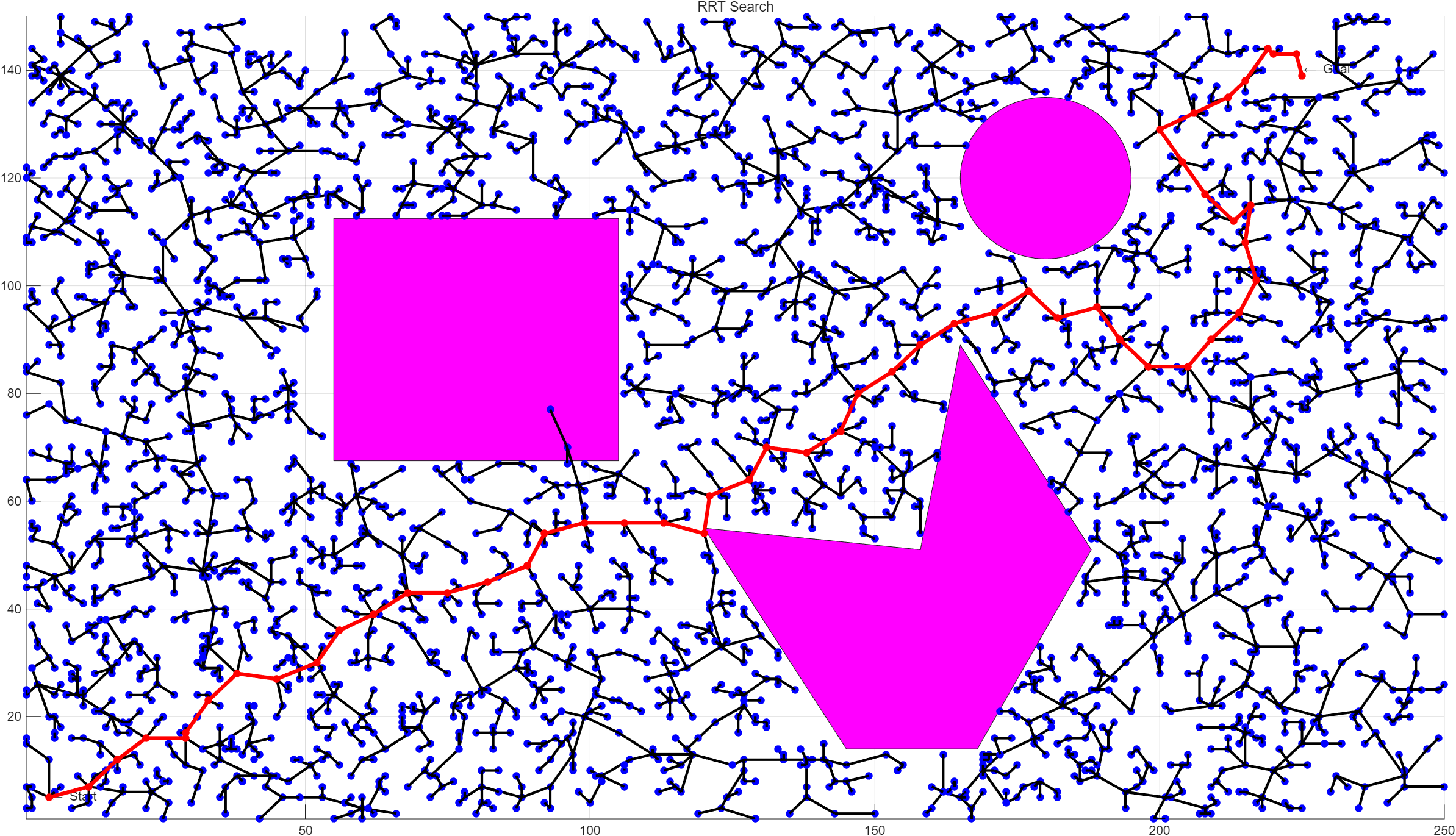 为突破上述瓶颈,快速搜索随机树(Rapidly-exploring Random Tree, RRT)算法凭借其概率完备性、对高维空间的良好适应性和快速搜索能力,成为机器人路径规划领域的主流算法之一。RRT算法通过随机采样和逐步扩展树结构的方式探索环境,无需对环境进行复杂建模,能高效处理复杂障碍环境下的路径规划问题。在此基础上,研究者们提出了RRT*算法(RRT的优化版本)和Informed RRT*算法(基于RRT*的改进版本),进一步提升了路径的优化性和搜索效率,为不同场景下的机器人路径规划提供了更高效的解决方案。