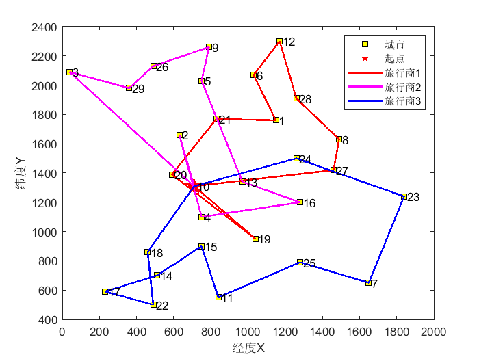 LegStr={'城市','起点','旅行商1','旅行商2','旅行商3','旅行商4','旅行商5','旅行商6'};