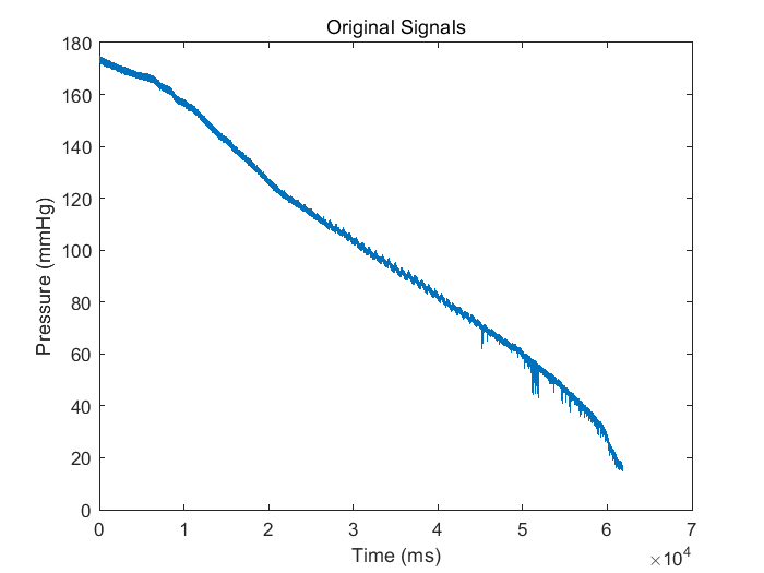 这段代码是用于示波法血压测量的硕士毕业设计程序,核心功能是加载血压信号样本、数据预处理、信号分离、特征提取并计算收缩压和舒张压。以下是代码的关键说明与可优化方向: