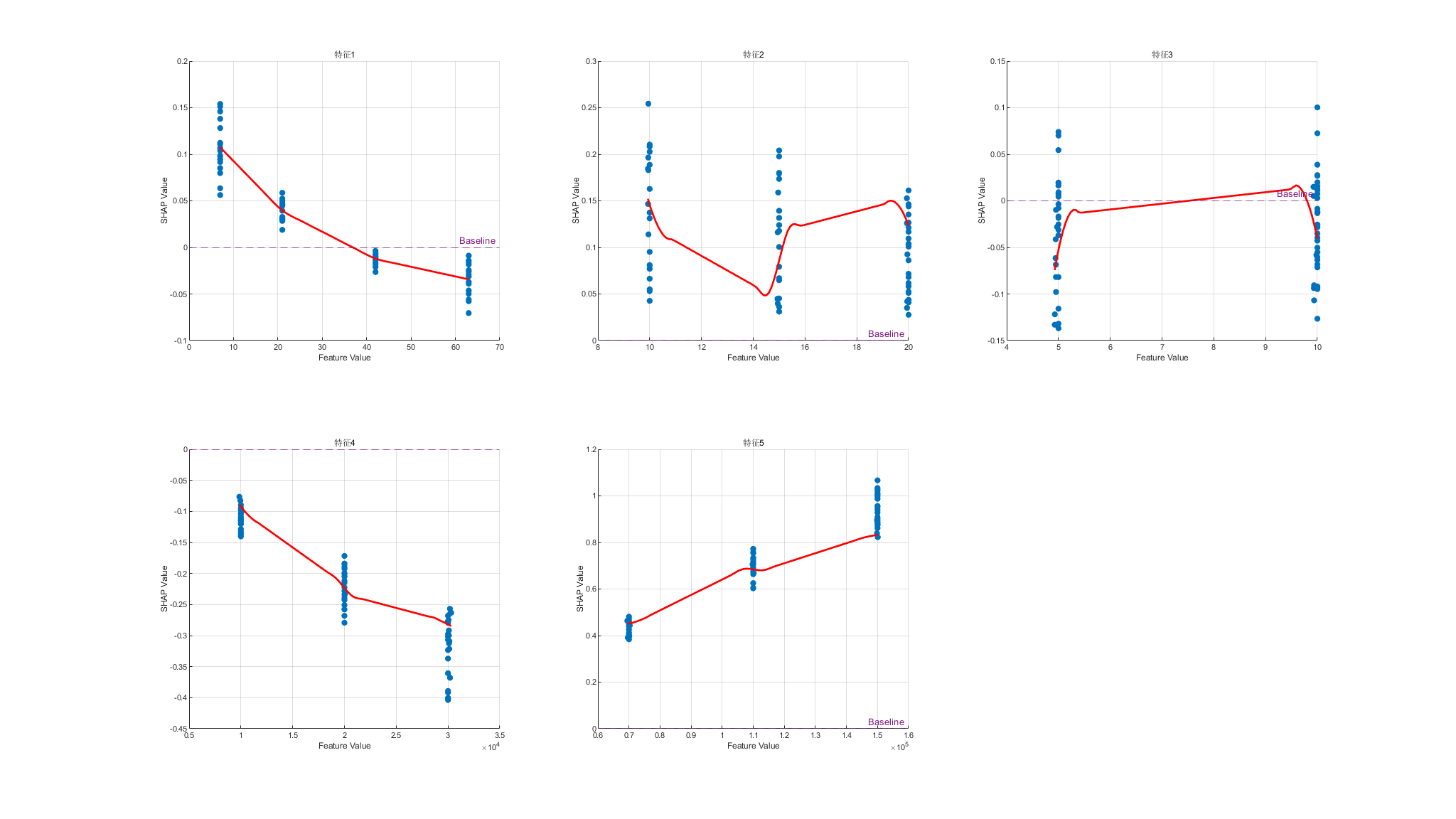 在回归预测任务中,SHAP方法可用于:(1)特征筛选:根据SHAP值的绝对值大小排序,剔除贡献度极低的冗余特征;(2)模型解释:分析关键特征对预测结果的影响规律,揭示“黑箱”模型的预测机制;(3)异常样本分析:通过单个样本的SHAP值分布,解释异常预测结果的产生原因。